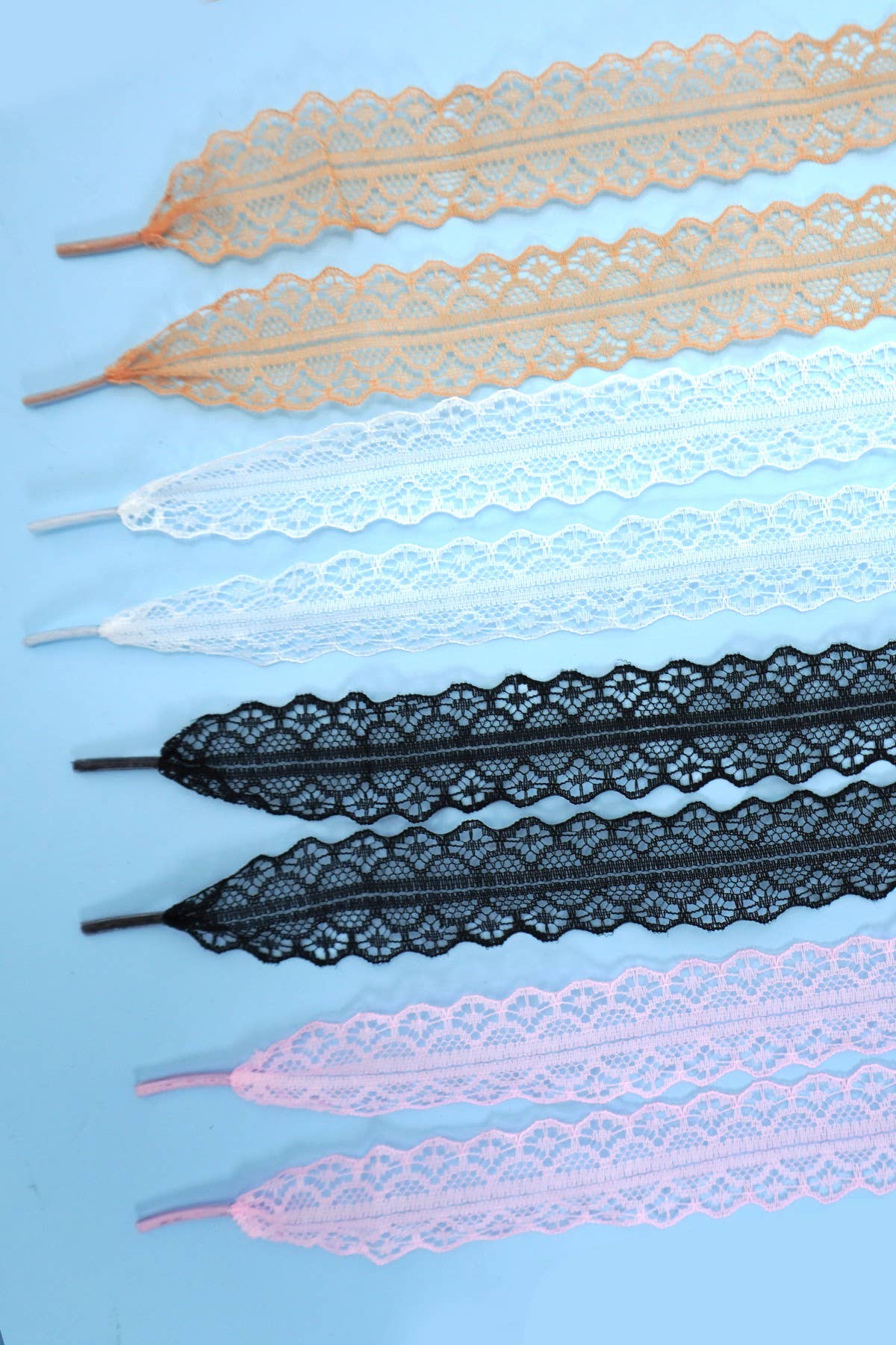 Elegance and charm to your sneakers or dress shoes with these delicate Chantilly lace ribbon bow laces. Featuring a soft, romantic lace design, they bring a feminine and stylish twist to any footwear.  Inspired by cottagecore aesthetics.