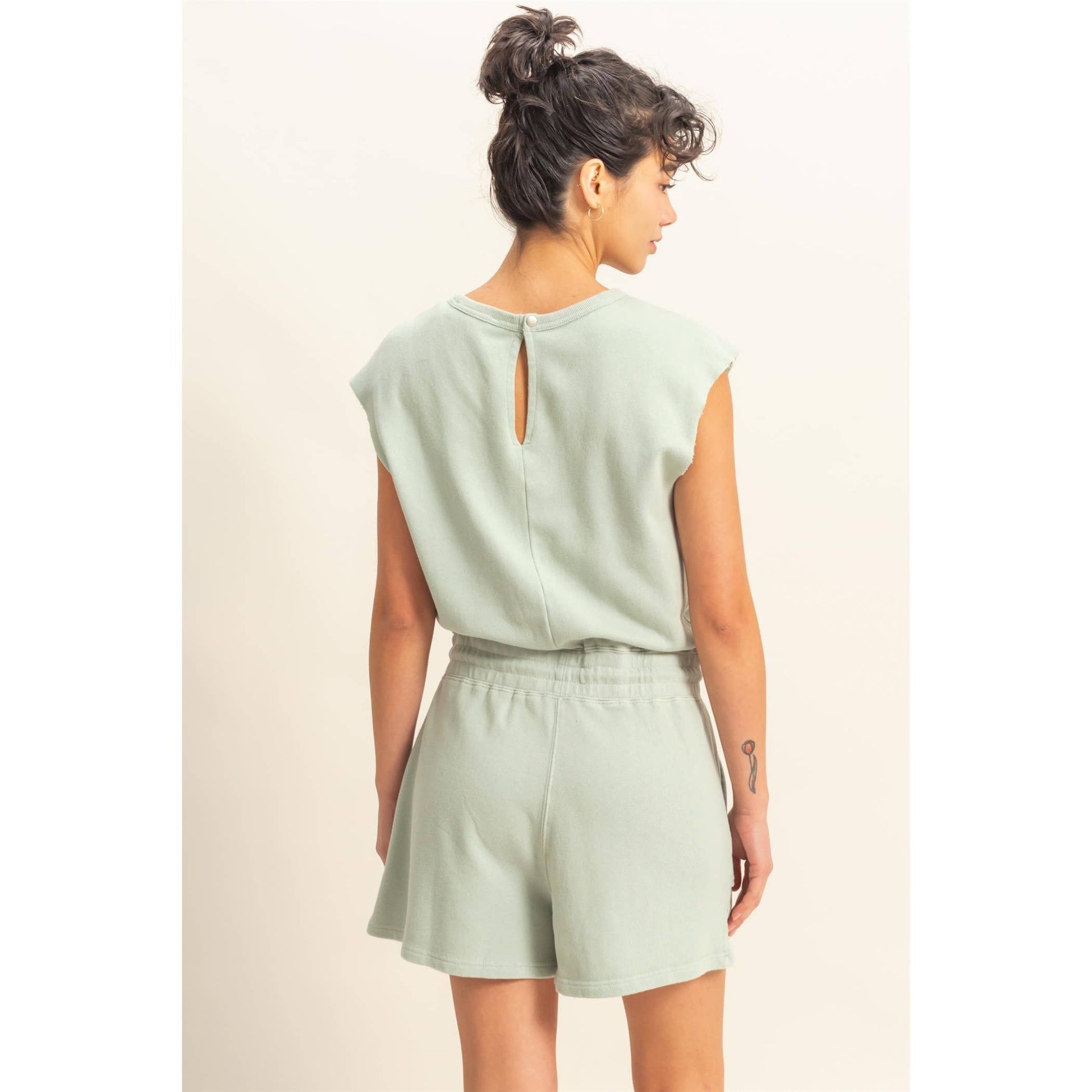 DZ25A773-Sleeveless Drawstring Waist Romper