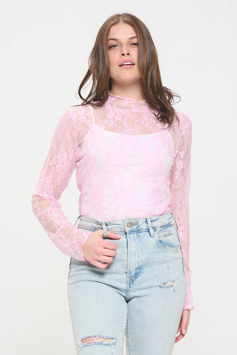 Floral print lace long sleeves top KRT1739 (Plus available)