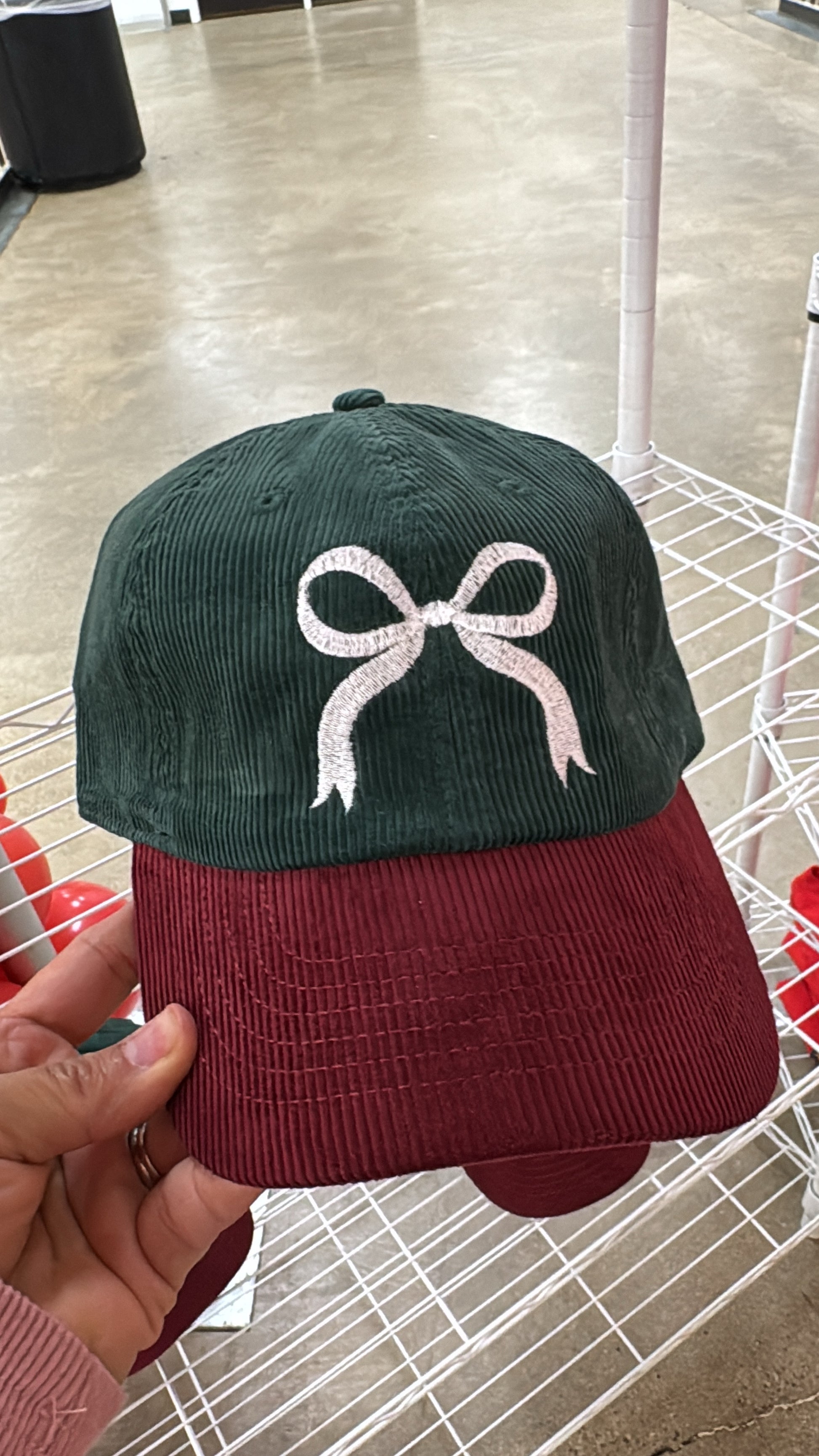 Green Bow Cord Hat