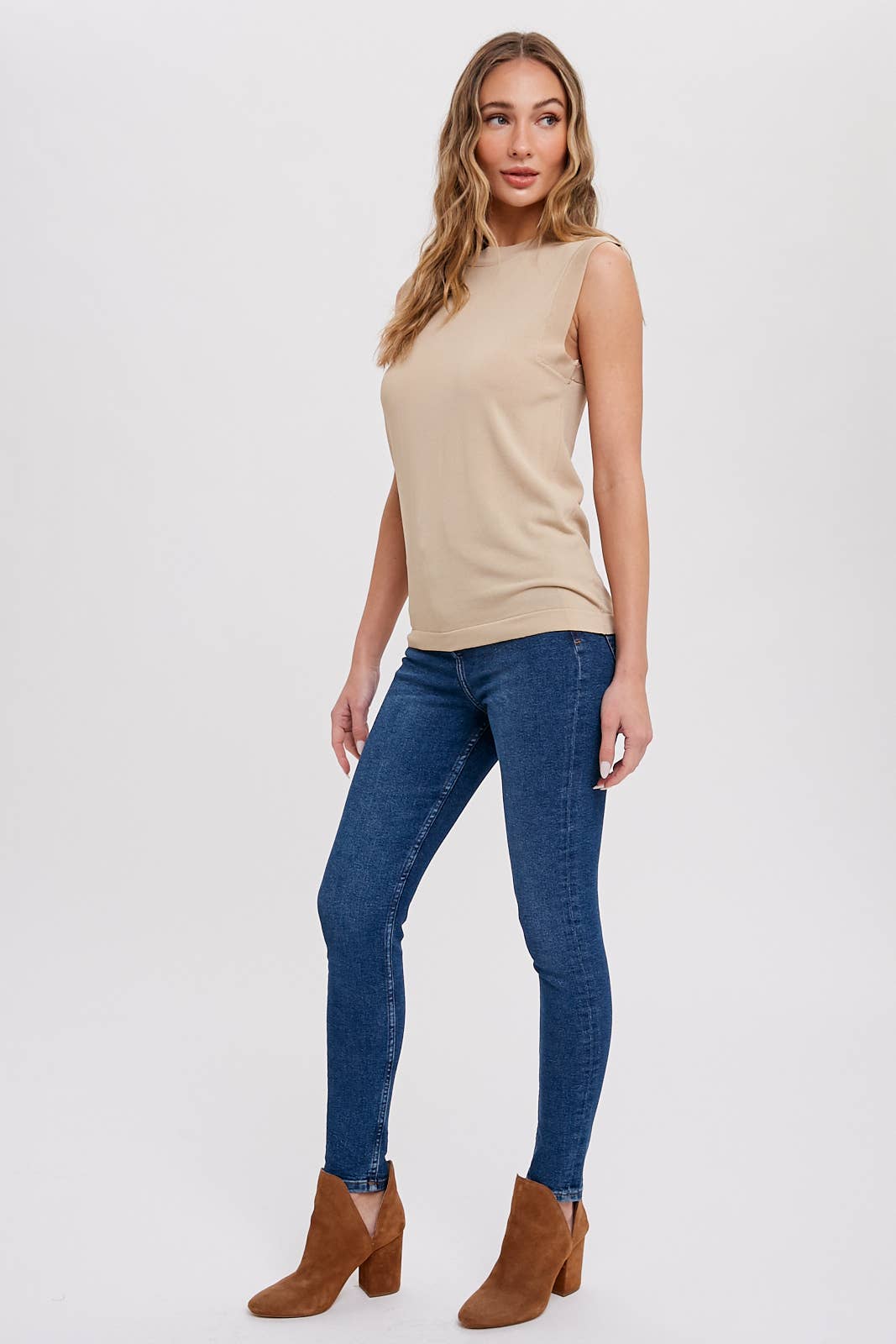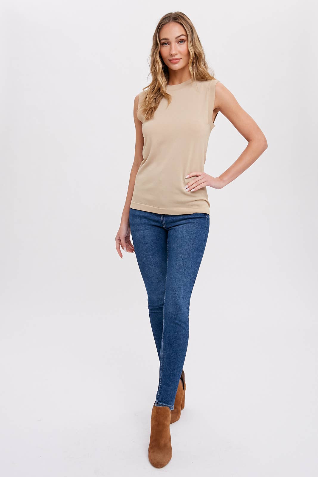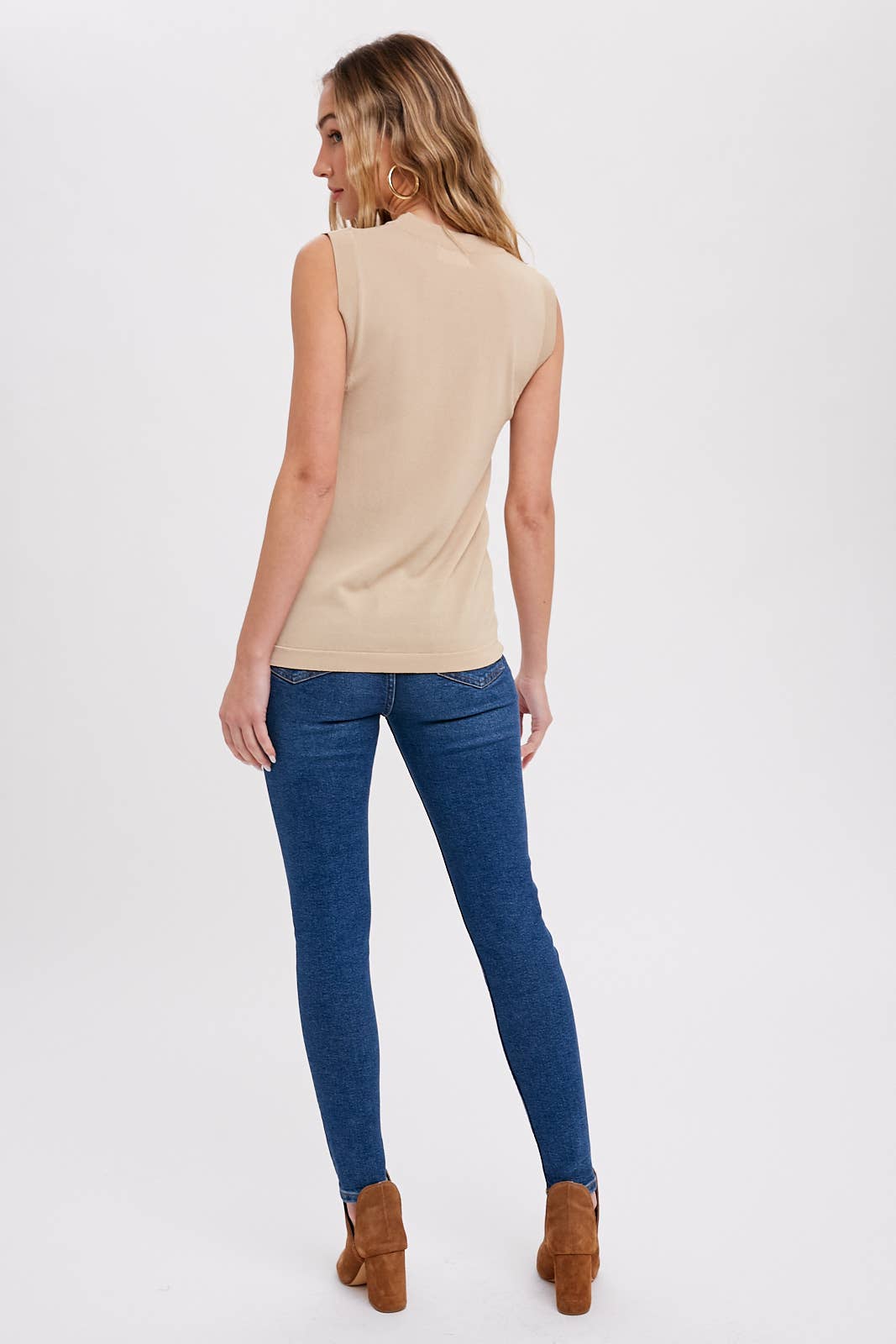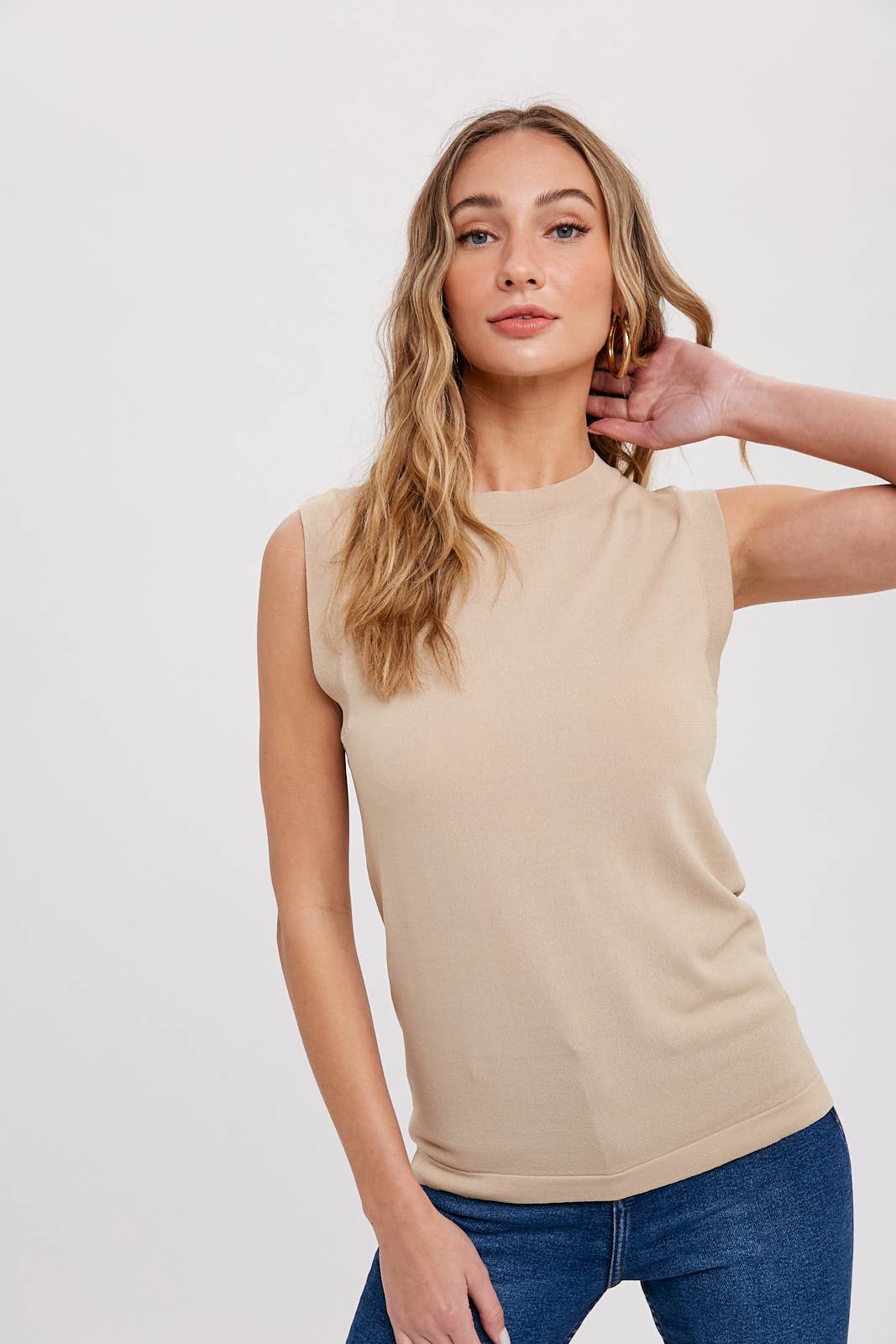 A classic staple with an extra touch of edge. Featuring a knit material with a high neckline, sleeveless design, relaxed fit.