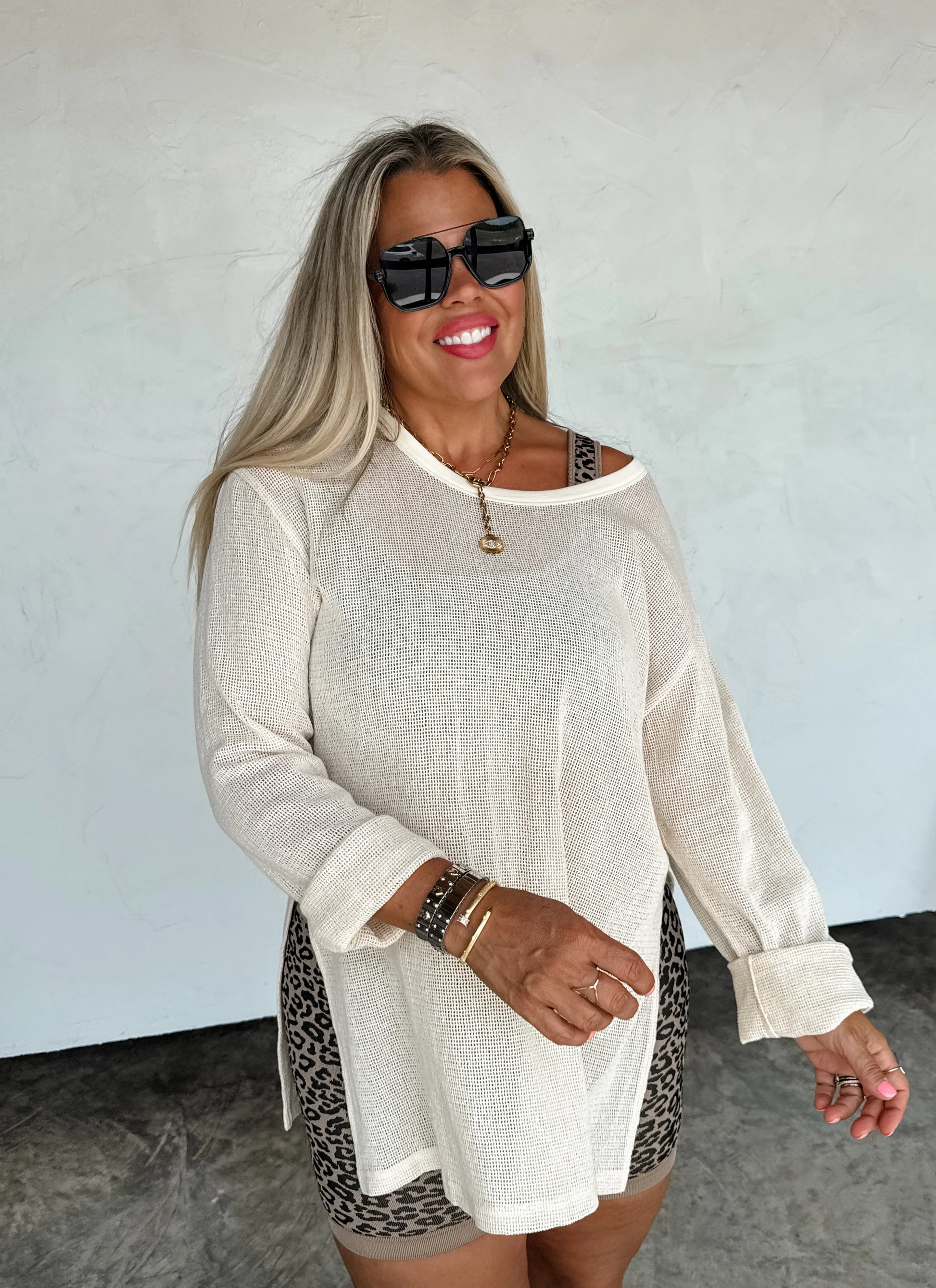 The perfect laid-back top! Features a slouchy fit, tunic length, wide boatneck, and side slits for easy movement.