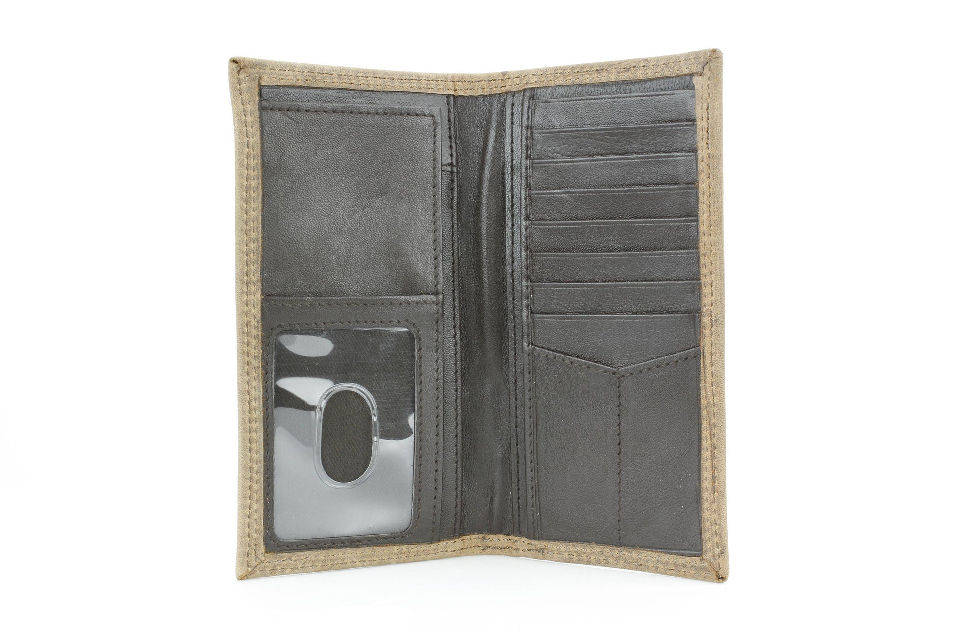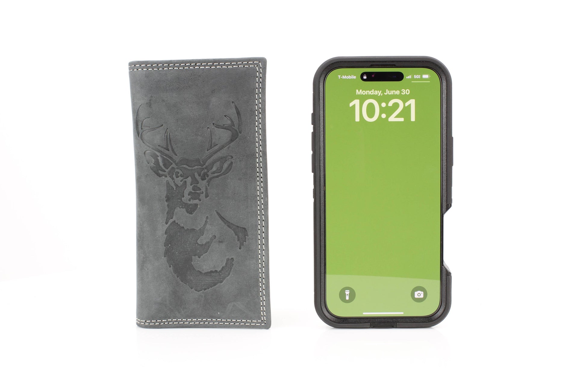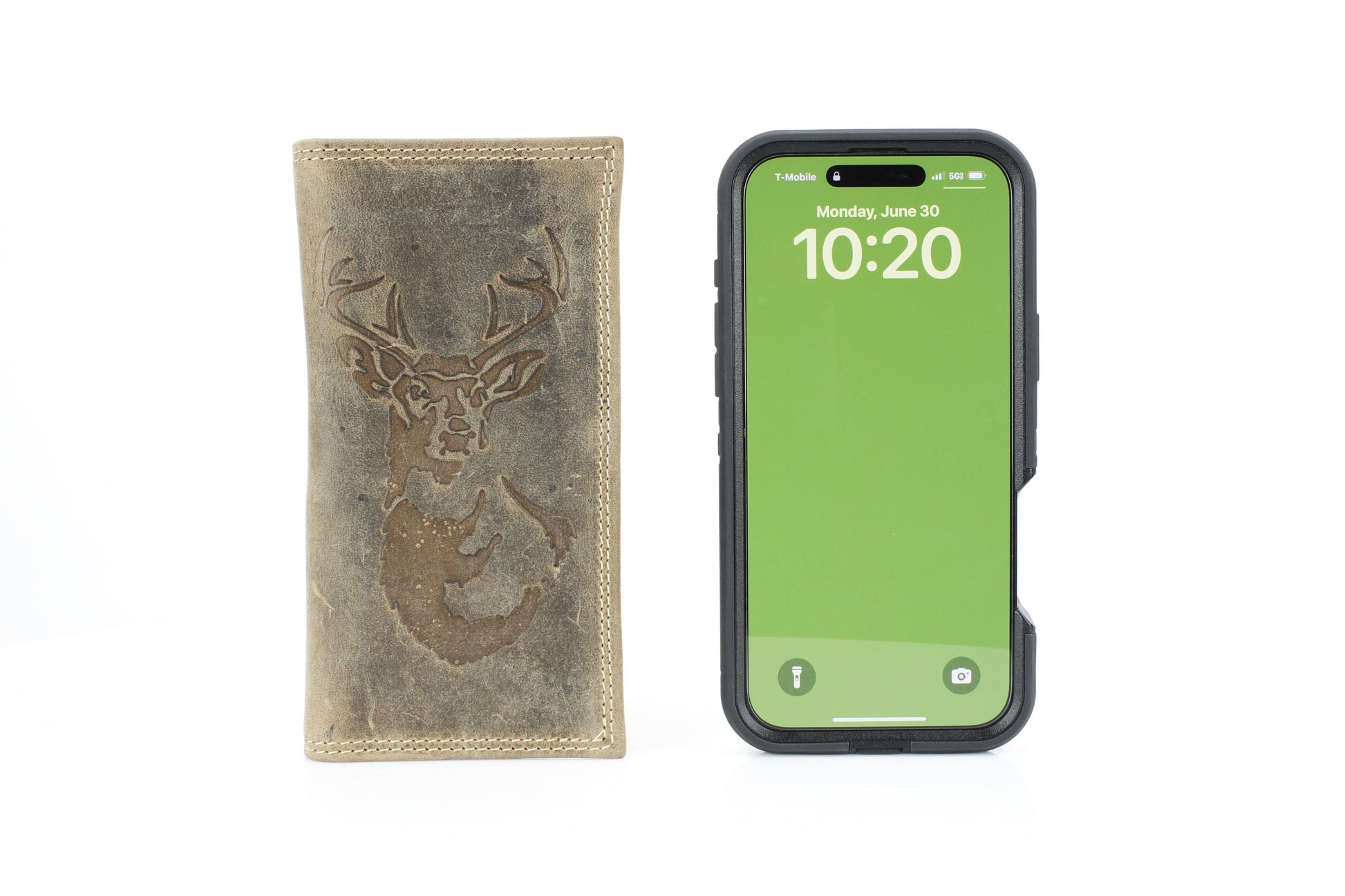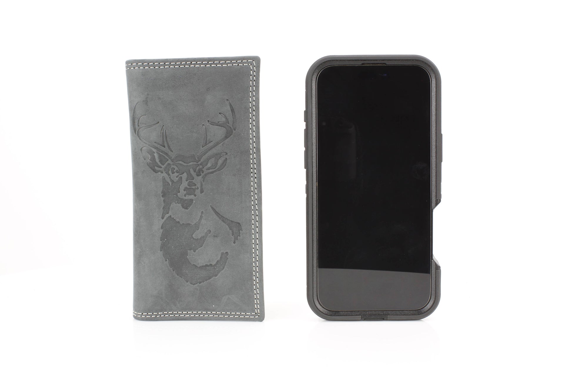 The American Bison men’s rodeo wallet is crafted from premium hunter leather, designed to deliver both durability and Western style. Featuring bold white double top-stitching, it creates a rugged contrast against the smooth leather finish. The front is embossed with a striking deer and antler design, making it a perfect piece for outdoorsmen and those who appreciate rustic detail. Inside, the tall rodeo-style layout offers smart organization, including one clear ID slot, nine credit card slots, and four vertical compartments for cash, receipts, or notes. With its slim yet spacious structure, this wallet is built for everyday use while keeping your essentials neatly arranged. Packaged in a sturdy cardboard box, it makes a practical and thoughtful gift. Available in black and brown.