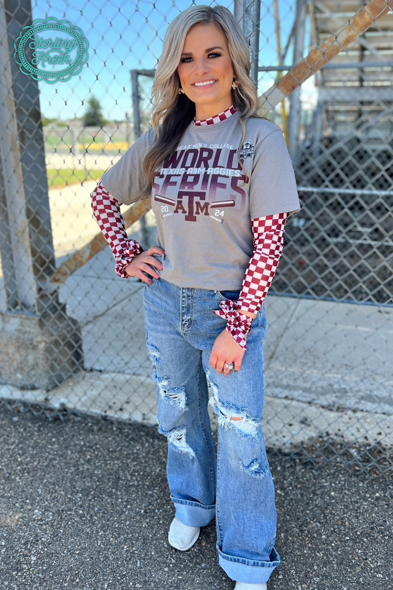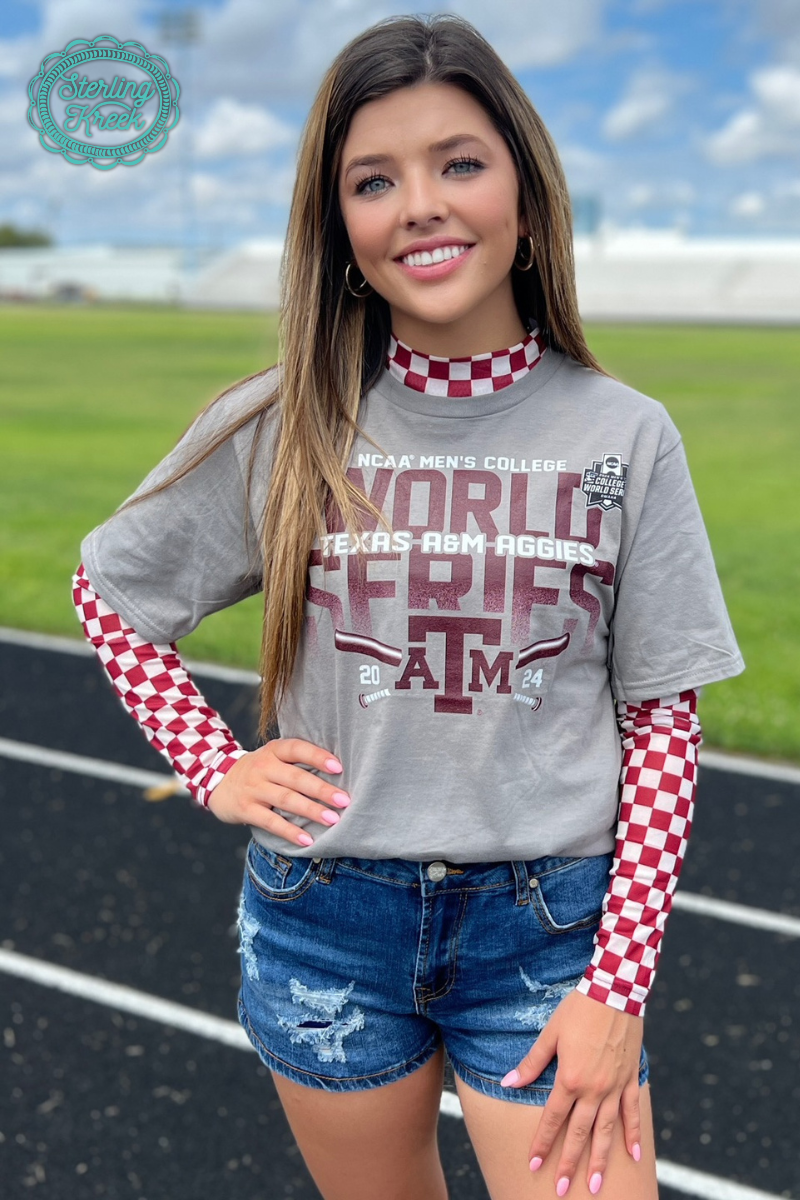 Get ready for the ultimate pep rally with this maroon and white checkered mesh top! Perfect for cheering on your favorite team or adding a touch of sporty style to any outfit. The lightweight mesh material keeps you cool while the bold print turns heads. (Go team!)